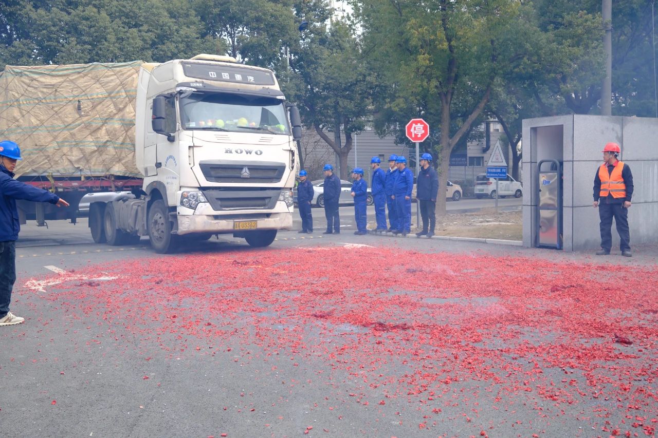 在2025年1月7日的上午10點28分 ,上海公司首車關(guān)鍵設(shè)備準(zhǔn)時運抵廠區(qū)。現(xiàn)場氣氛熱烈 ,員工們紛紛用手機記錄下這一具有非凡意義的時刻。